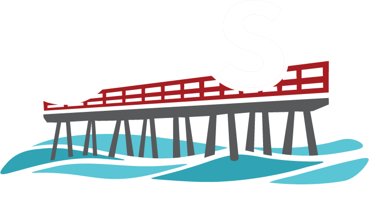 - The iconic red pier at Memorial Park
